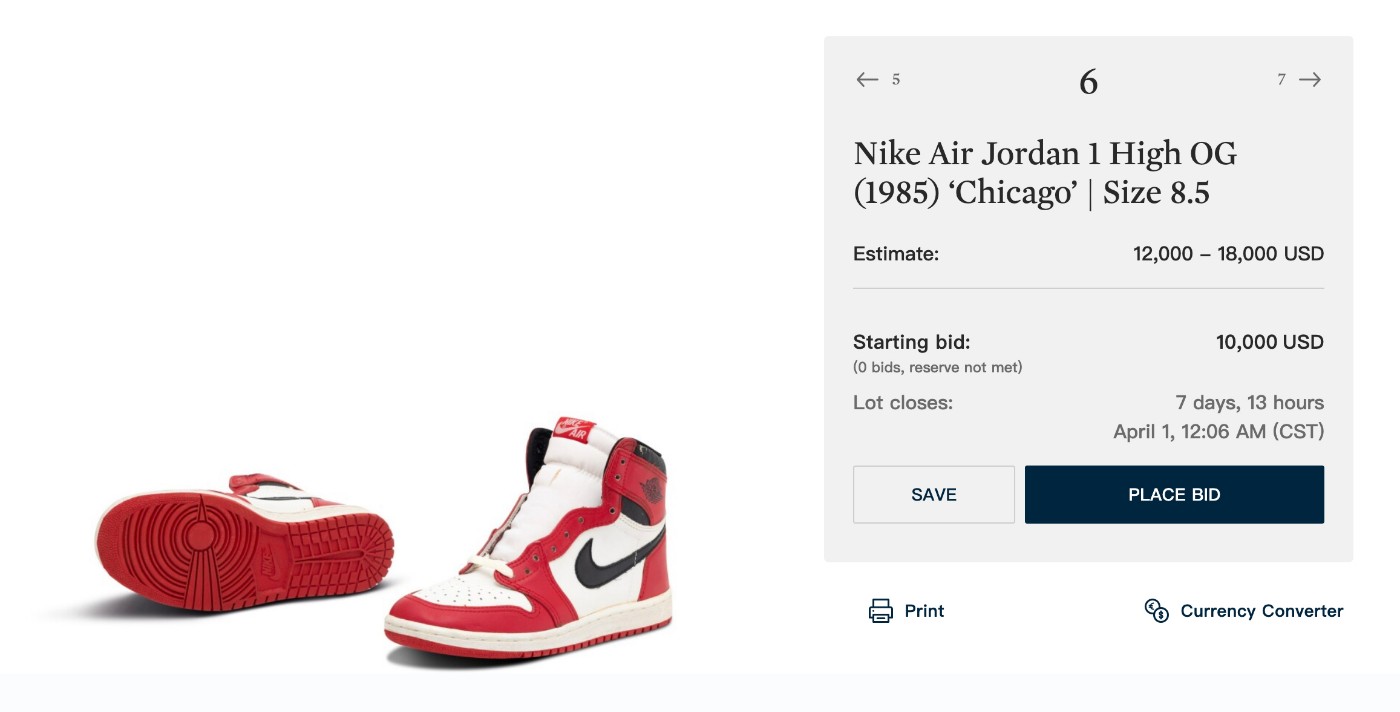 除了这套让人垂涎的初代整套 OFF-WHITE x Nike「The Ten」外,本次苏富比「Modern Collectibles」拍卖会还有 Virgil Abloh 亲签的 LV Trainer、2016 年自动系带版本的 Nike MAG 以及 1985 元年「芝加哥」配色 Air Jordan 1 同期上架。