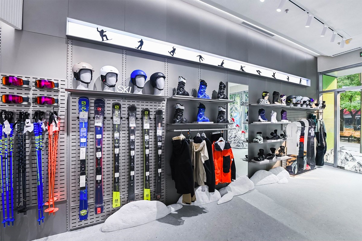 除了球鞋玩家最为关心的 Salomon 鞋款,该店还有滑雪用品专区,提供雪板、雪地靴、滑雪杖等专业设备的销售。