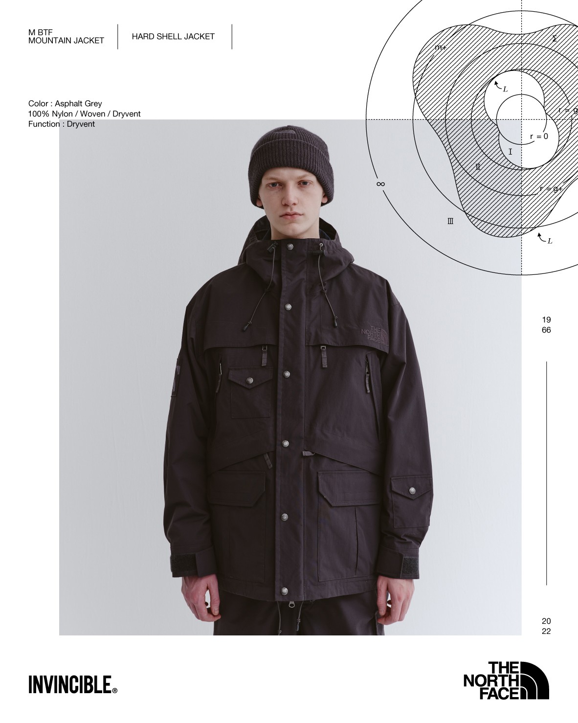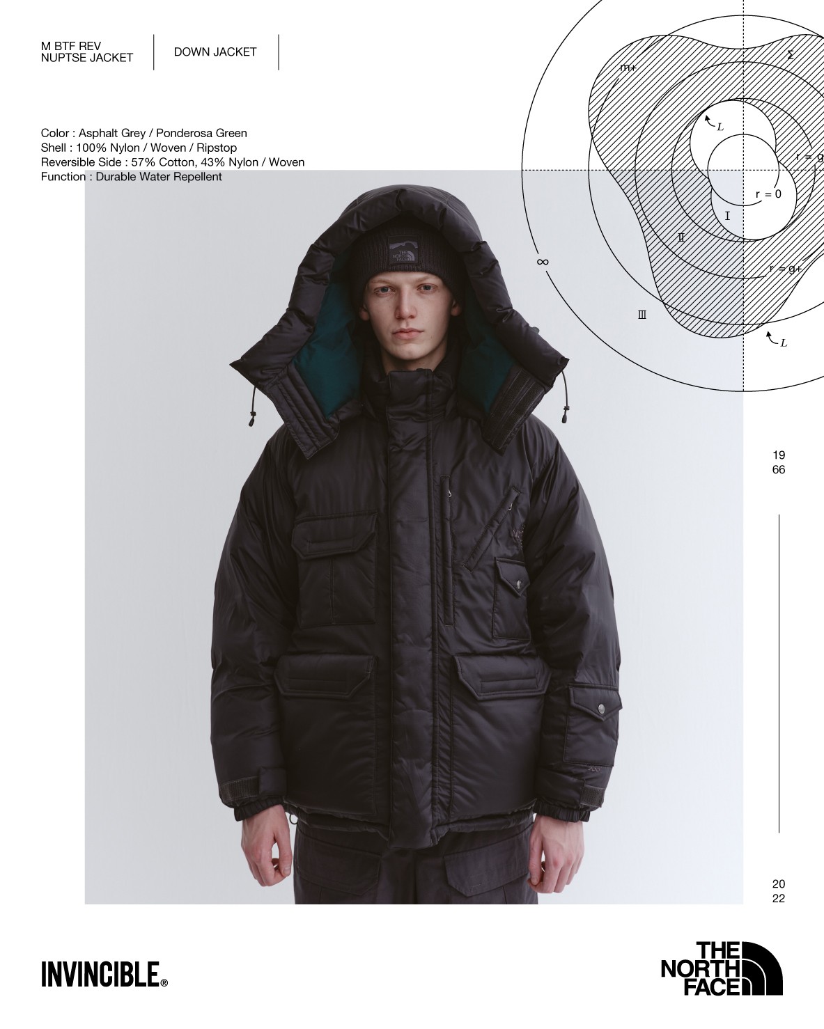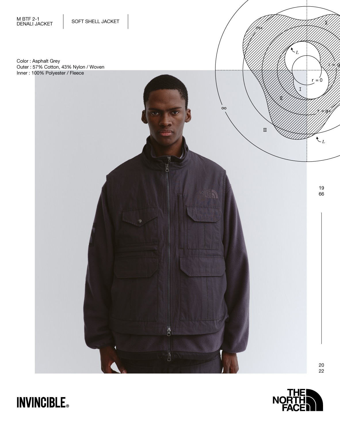 并加入双面菱形、多口袋元素、可拆卸式帽搭配 INVINCIBLE® 专属 Half Dome Logo,赋予更为多样的穿搭体验。