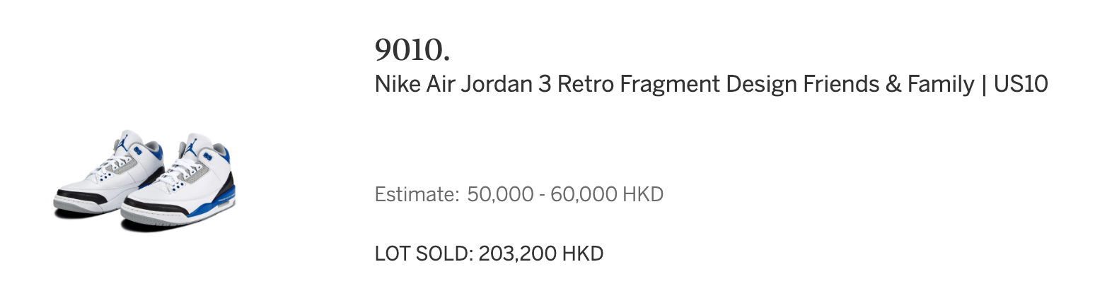 不过像是球鞋、劳力士这些十足稀罕的玩意,还都以不菲的价格拍卖成功,单是几双 Air Jordan 系列球鞋,就让老爷子赚麻了!