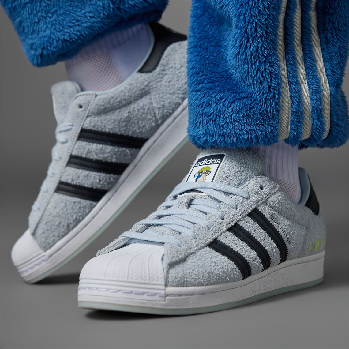 整双鞋以经典的 Superstar 为蓝本,设计灵感主要来自与和元宇宙中的 IP、品牌合作,包括 NFT 先驱 Bored Ape Yacht Club、gmoney 和 PUNKS Comic 背后的团队。