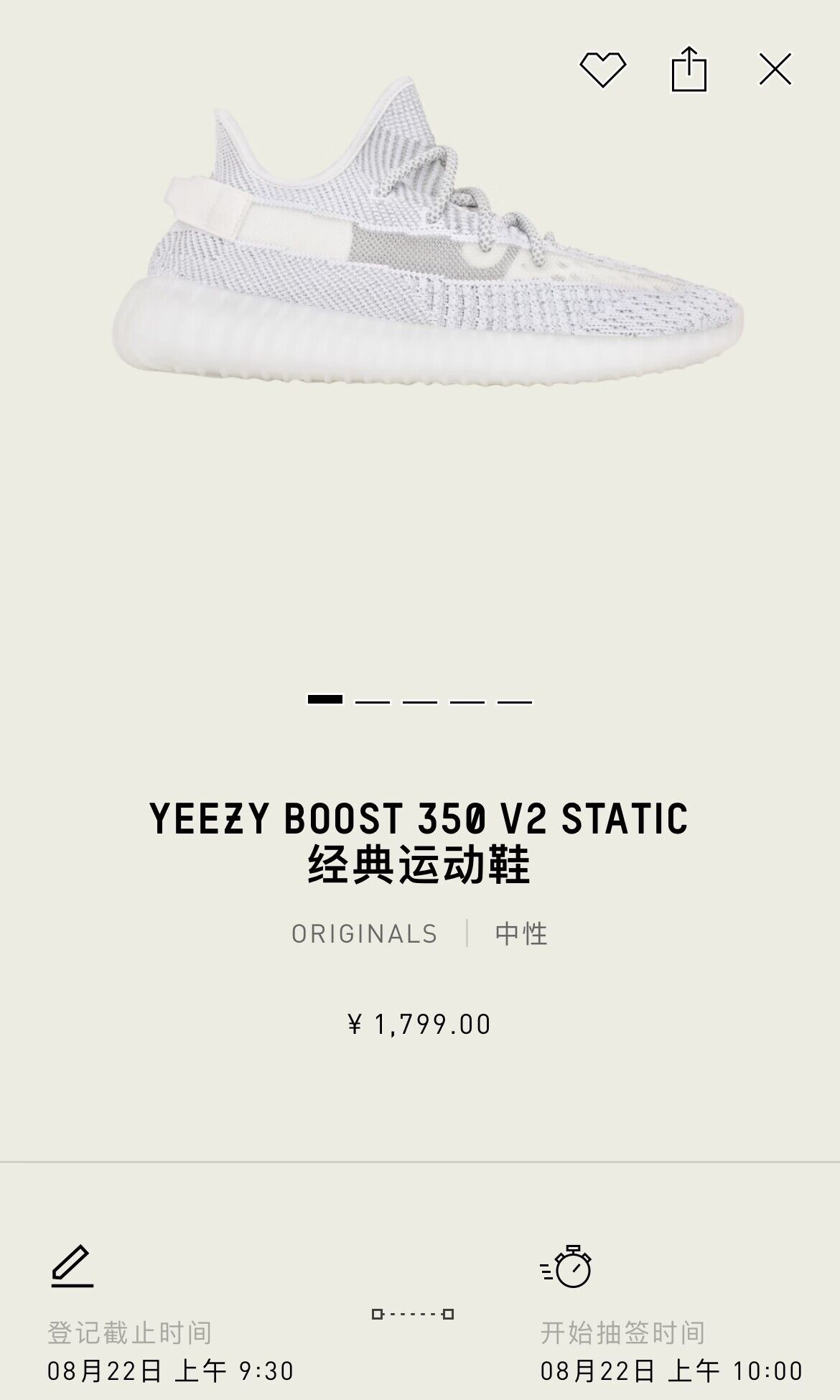 纯白 Yeezy Boost 350 V2 终于迎来补货,现已上架 CONFIRMED APP,将于明天上午登场。