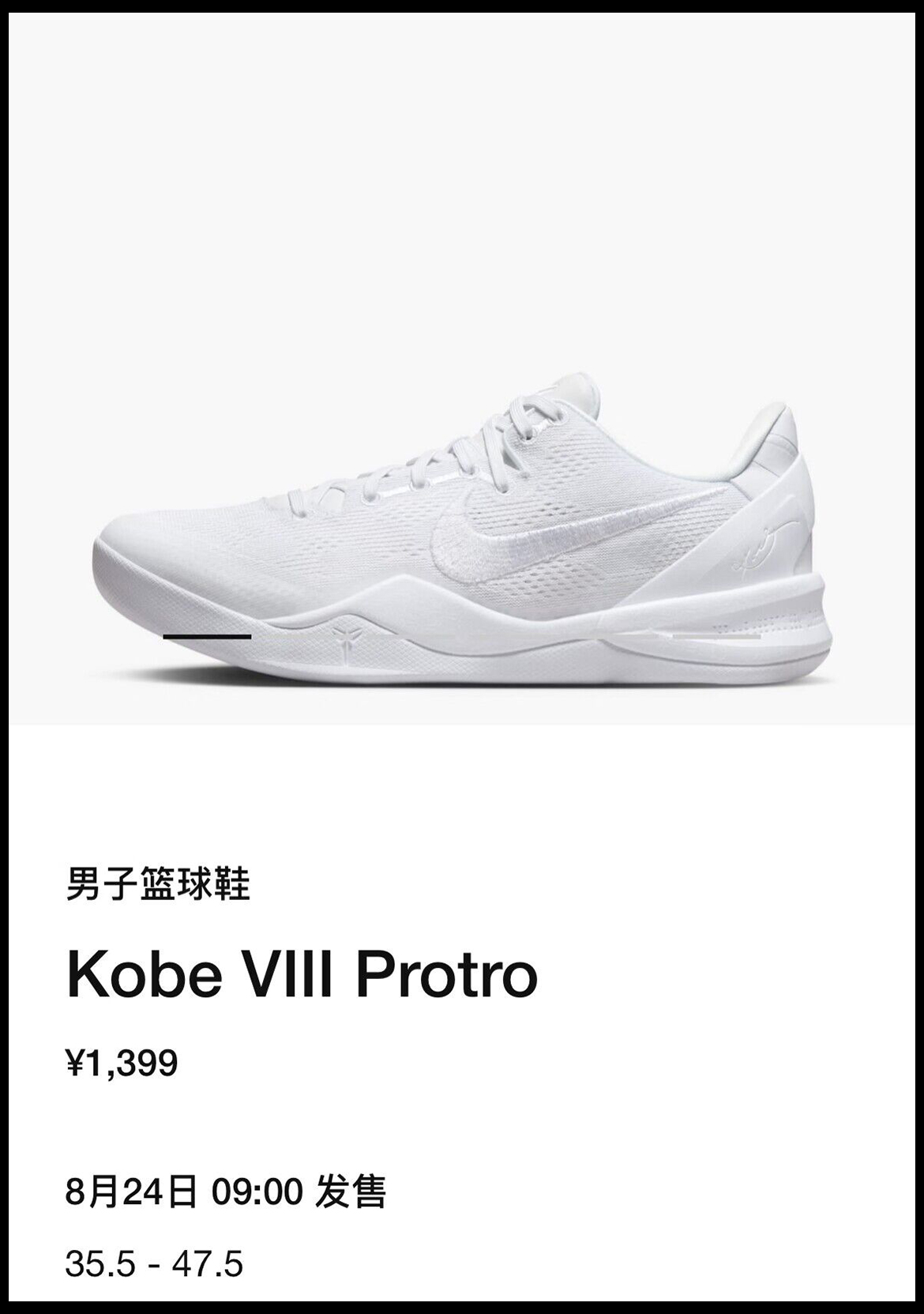 在本周大家期待已久的「纯白」科比 8 正式上架 SNKRS 中国 APP,喜欢的朋友一定要做好准备。