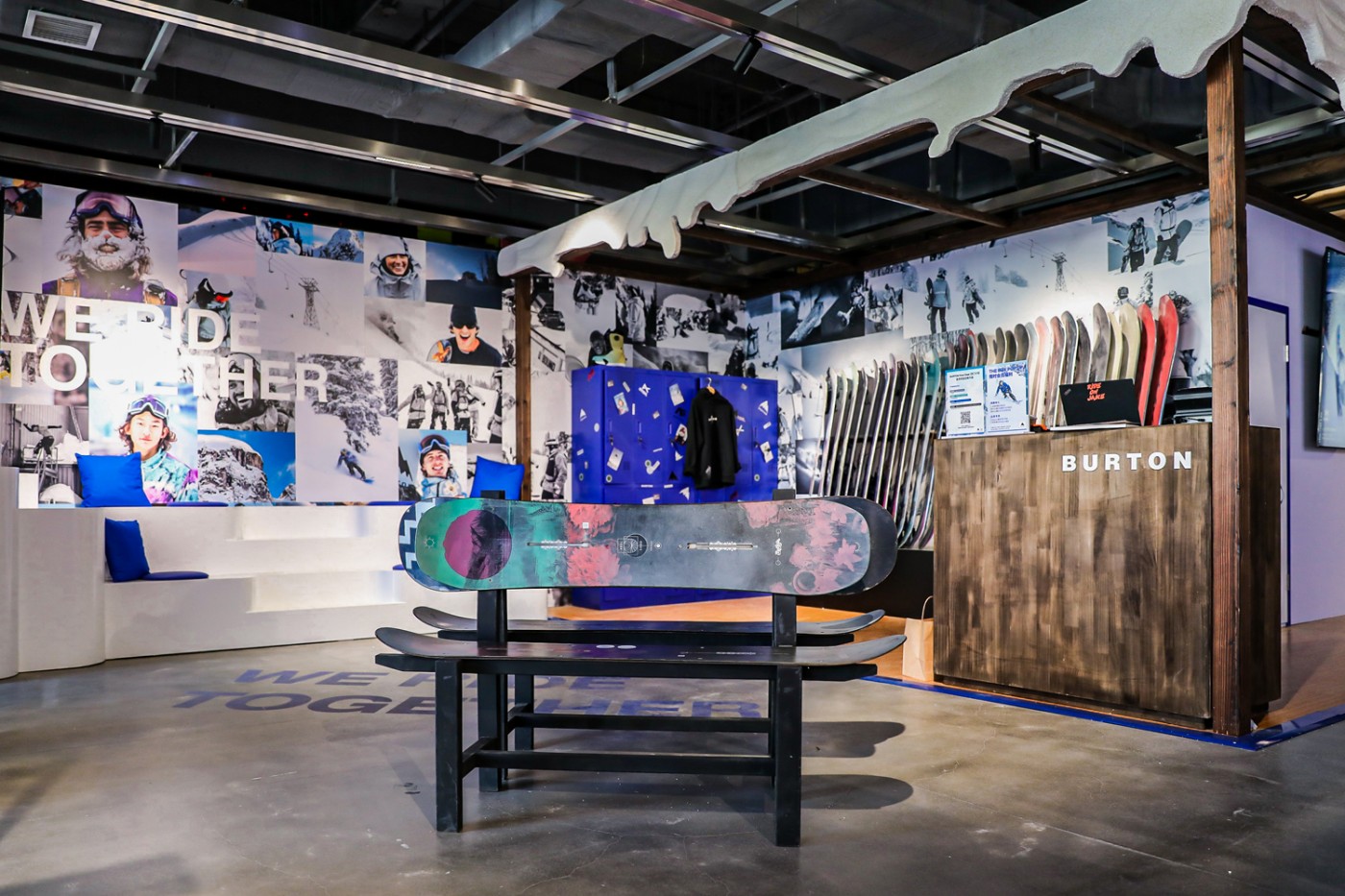 同时,BURTON 还在活动现场,打造了一家单板滑雪主题的限时快闪店。