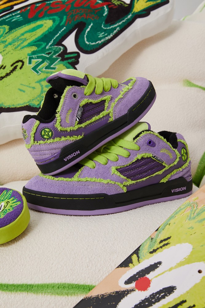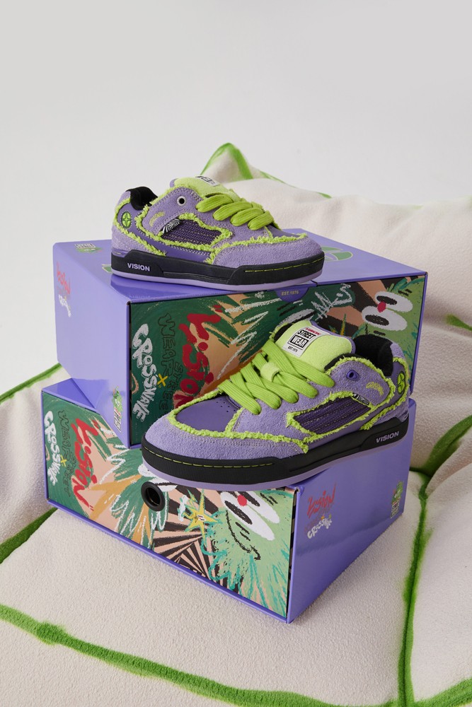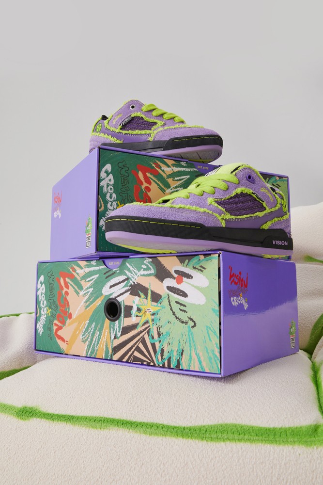 插画艺术家 CROSSWAVE 与 VISION STREET WEAR 首次合作带来的联名新鞋。