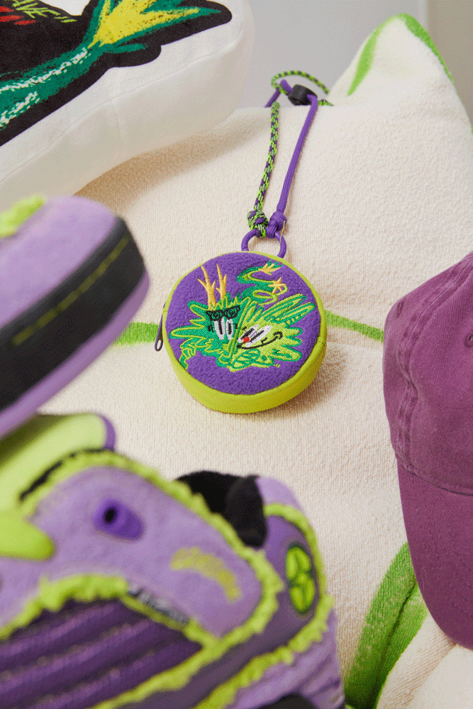 作为龙年限定这双联名鞋被赋予更个性的外观,使用紫色为主调,寓意新的一年红到发紫的美好祝愿,辅以绿色勾勒,独特撞色呈现出眼前一亮的 CNY 主题。