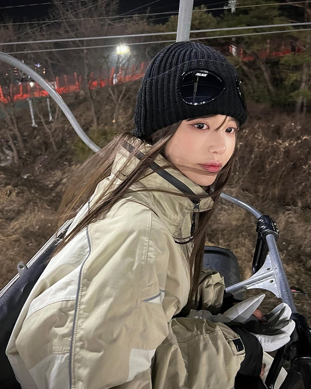 最后这身造型中,Hye Mi 佩戴了 PALACE x C.P. Company 联名的冷帽。