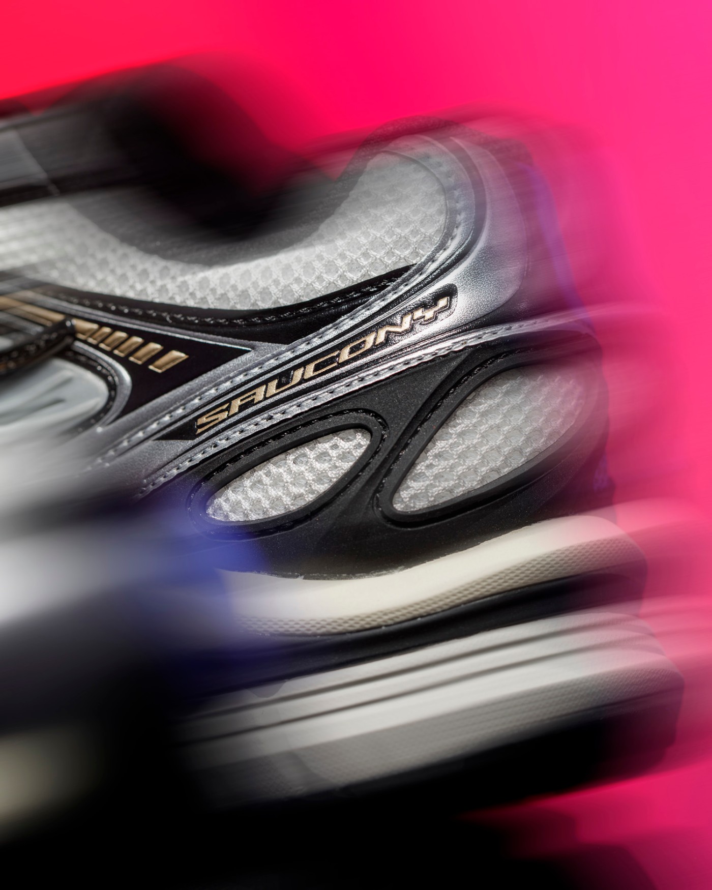 金标的索康尼 Logo,承载的是百年跑鞋底蕴。
