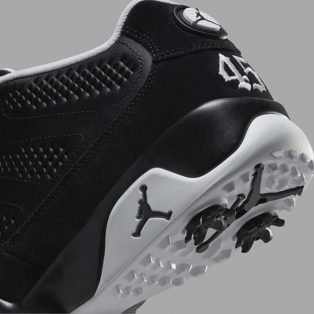 乔丹第一次退役后参加棒球联盟的故事相信大家都很熟悉了。 近日,一双高尔夫鞋版本的 Air Jordan 9 就选择以乔丹的棒球生涯为灵感,打造全新配色。 鞋身颜色代表乔丹曾效力的伯明翰男爵队,黑白是球队标志性特征。 鞋垫则印有经典的竖条纹以及乔丹当时的 45 号。 后跟 45 号不仅为精致的刺绣工艺,字体也换为更具复古艺术风格的手写体。 虽然是高尔夫版本,但将鞋底的鞋钉拆卸后也能当做正常球鞋穿着。 据悉,全新 Air Jordan 9 Golf “Barons” 将于本月登场。