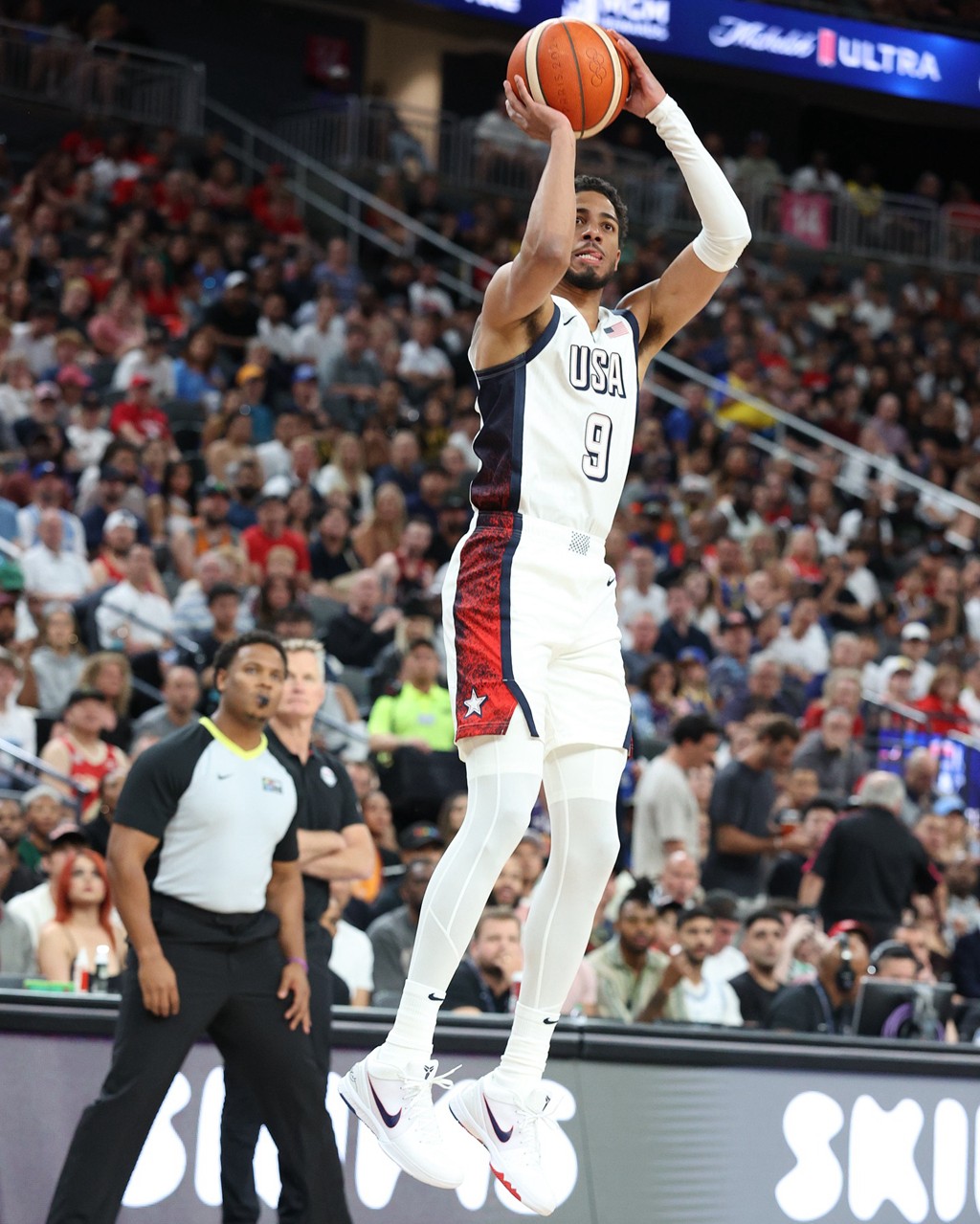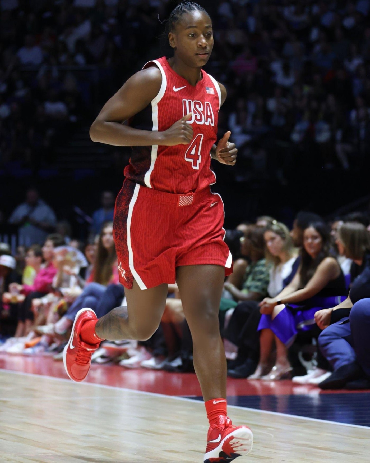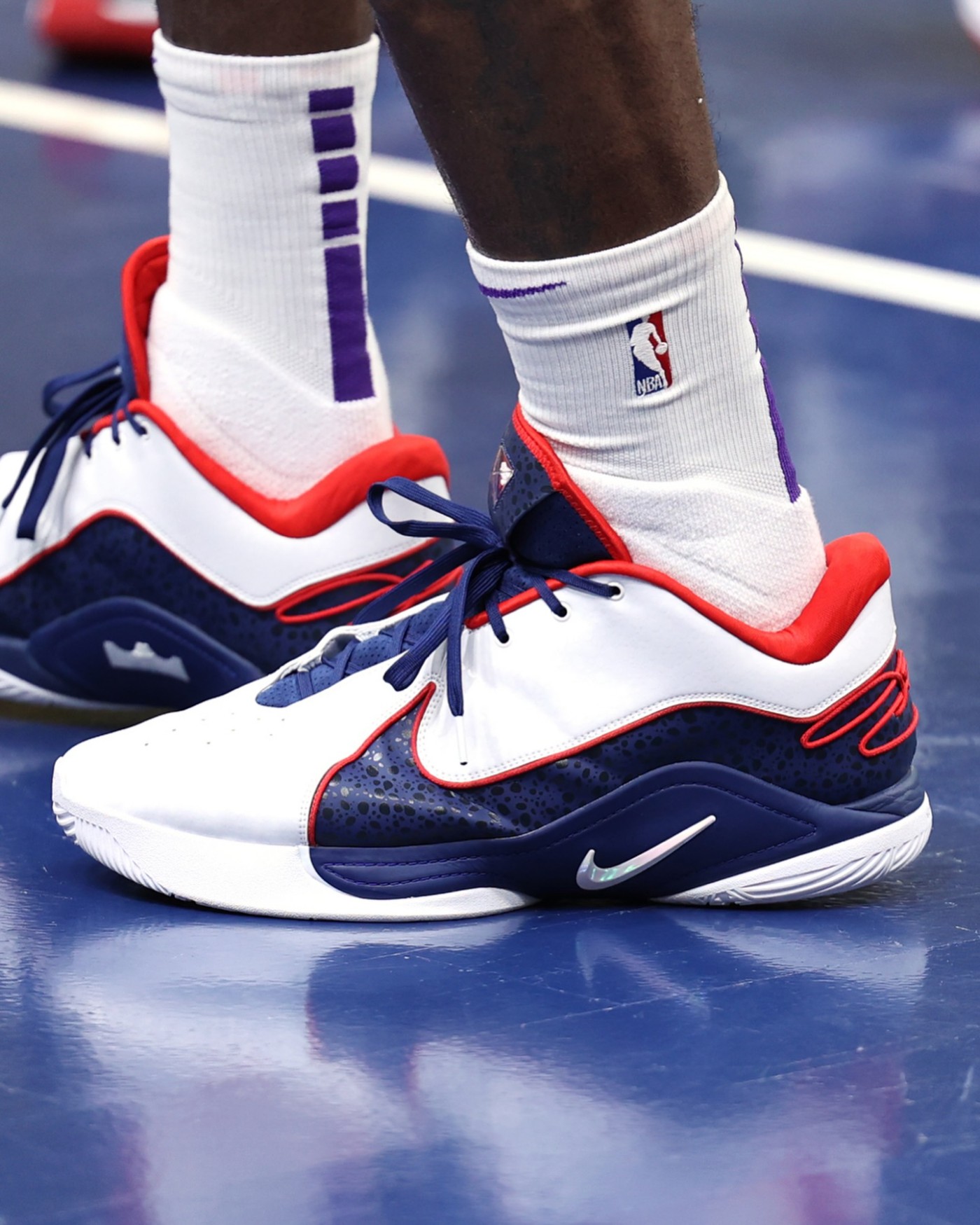 在热身踩场和正赛中率先上脚美国队的主、客两款配色。