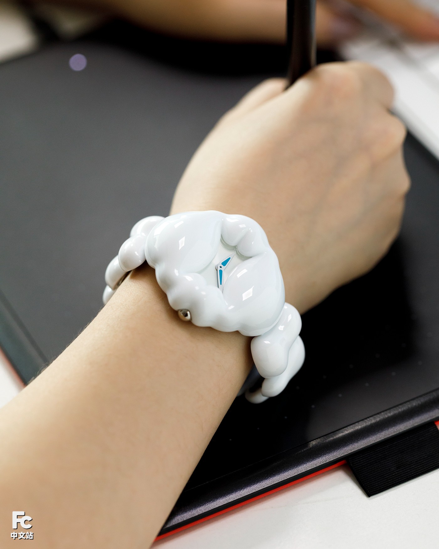 设计灵感源自童年的电子游戏,初见第一眼,就被手表外壳膨胀挤压的造型吸引。