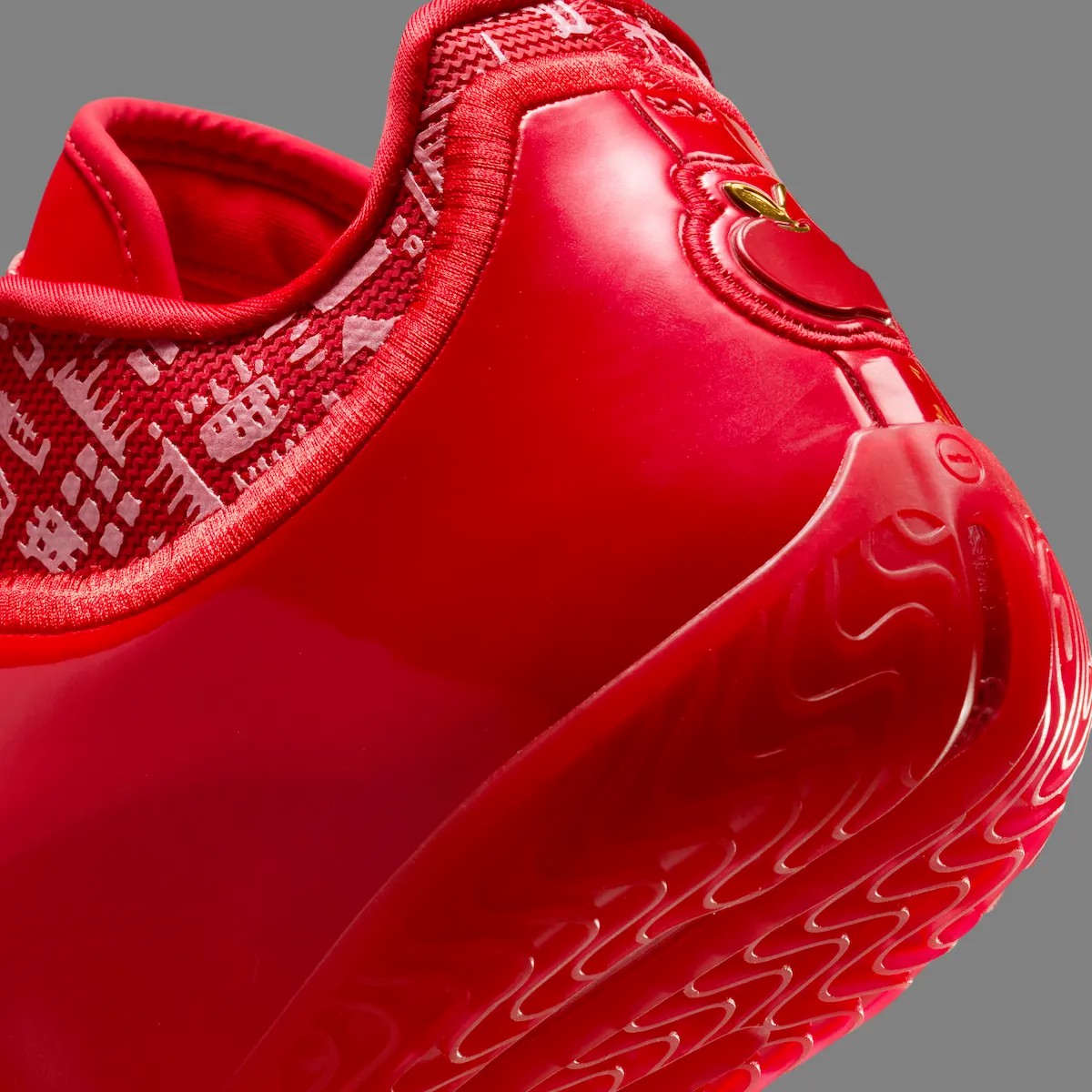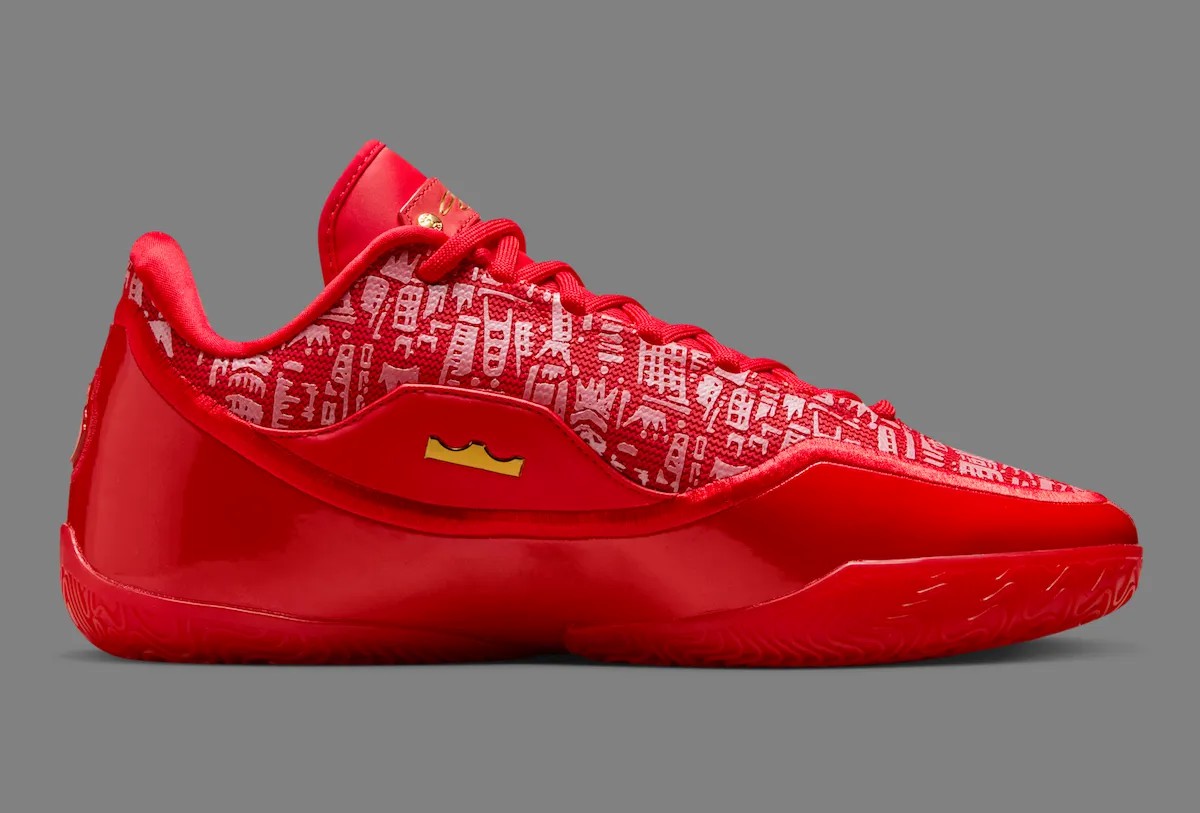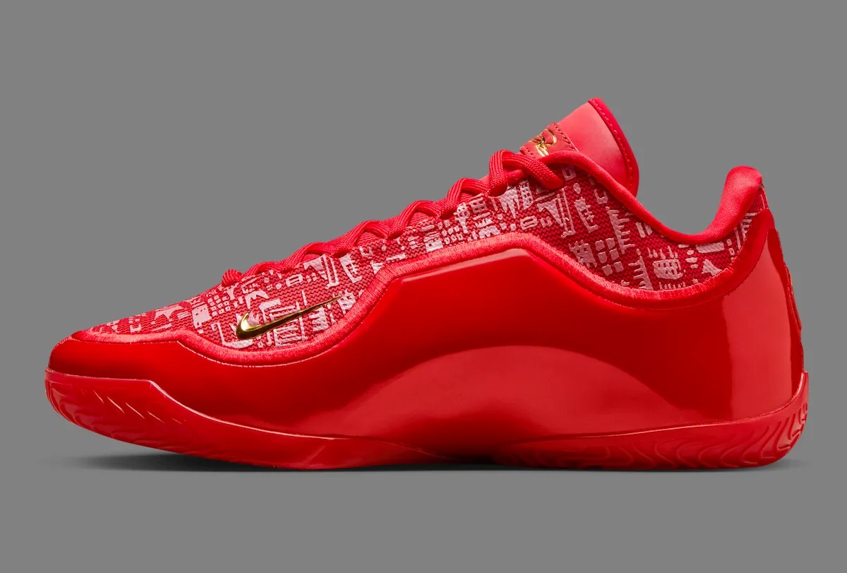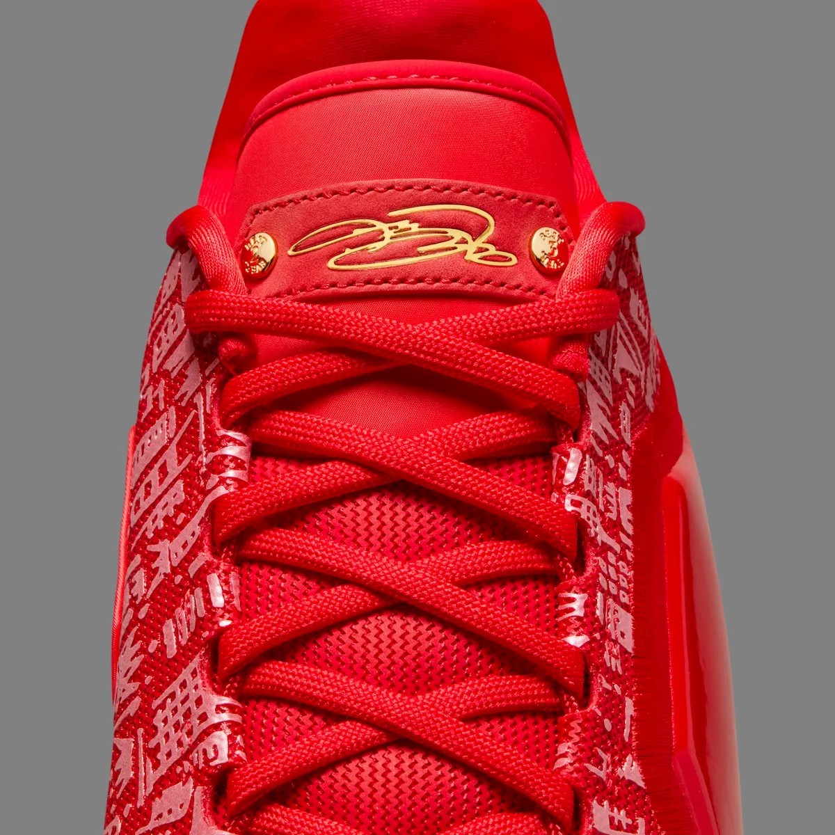 配色上以红色为主,点缀金色细节,鞋面饰有反光涂鸦,整体辨识度不低。