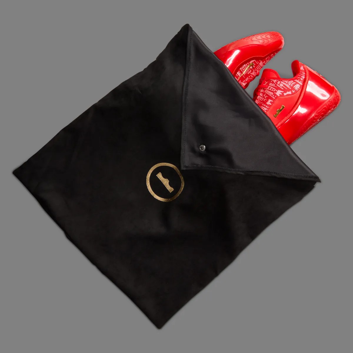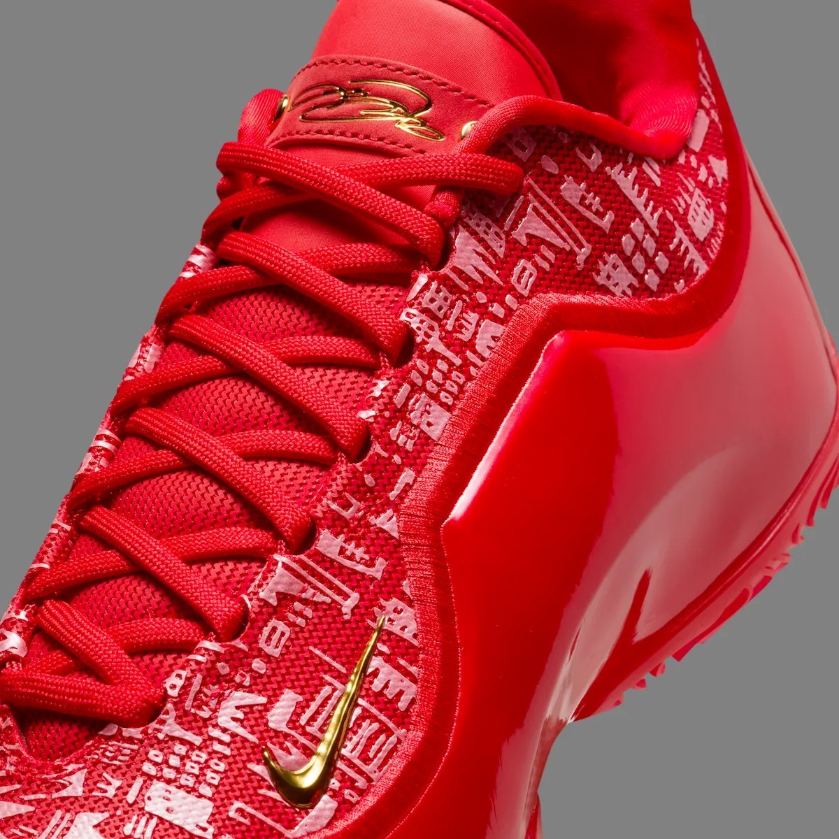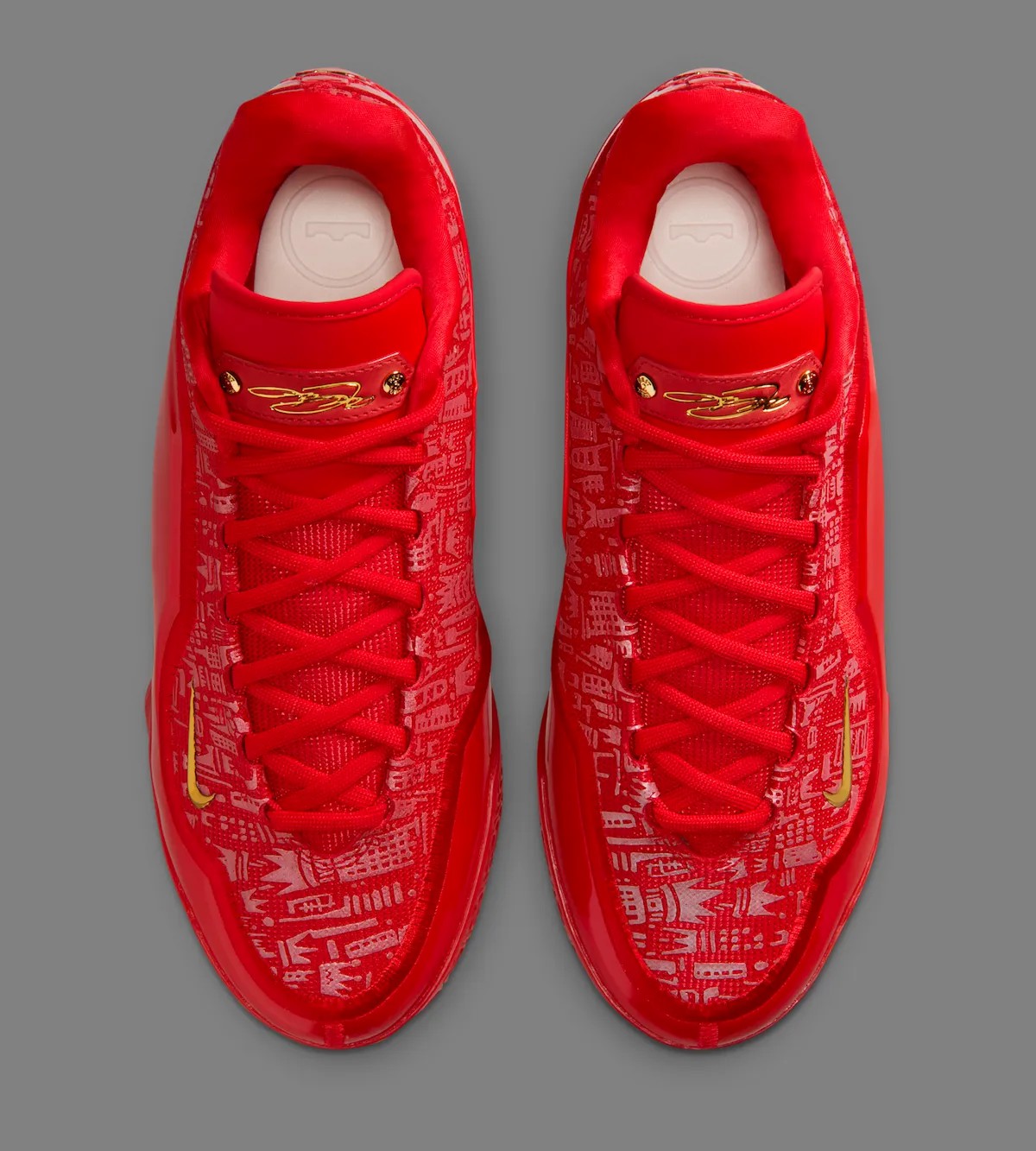 配色上以红色为主,点缀金色细节,鞋面饰有反光涂鸦,整体辨识度不低。